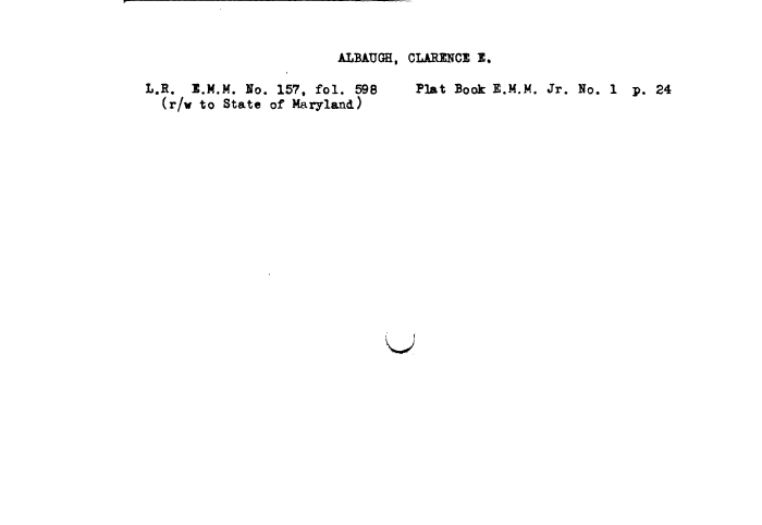 | ALBAUGH, CLARENCE I. L.R. l.M.M. Ho. 157, fol. 598 Plat Book E.M.M. Jr. No. 1 p. 24 (r/w to State of Maryland) |