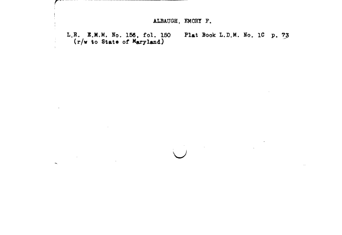 | ALBAUGH, EMORY F. L.R. I.M.M. No. 156, fol. 150 Plat Book L.D.M. No. 1C p. 73 (r/w to State of Maryland) |