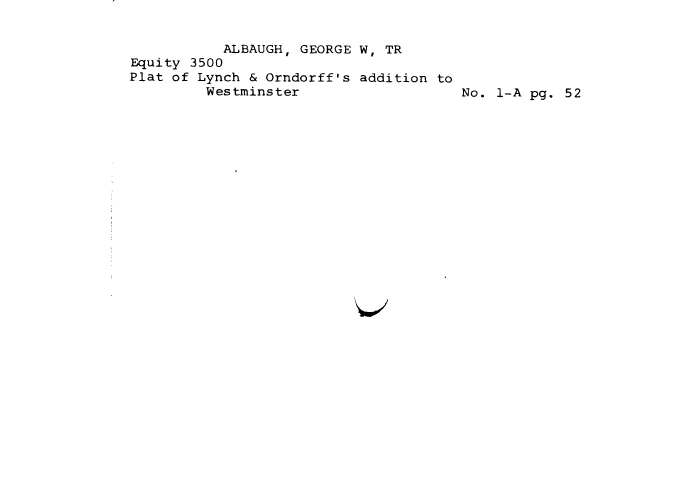 | ALBAUGH, GEORGE W, TR Equity 3500 Plat of Lynch & Orndorffs addition to Westminster No. 1-A pg. 52 |