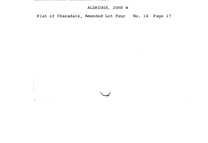 | ALDRIDGE, JOHN W Plat of Chazadale, Amended Lot Four No. 14 Page 17 |