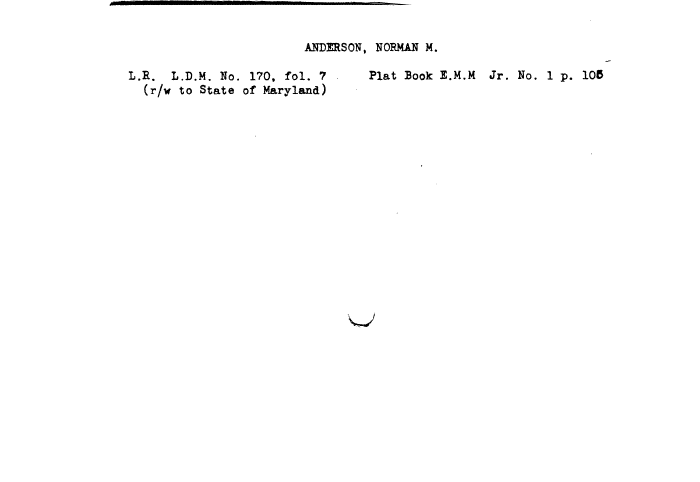 | AND1RSON, NORMAN M. L.R. L.D.M. No. 170, fol. 7 Plat Book B.M.M Jr. No. 1 p. 106 (r/w to State of Maryland) |