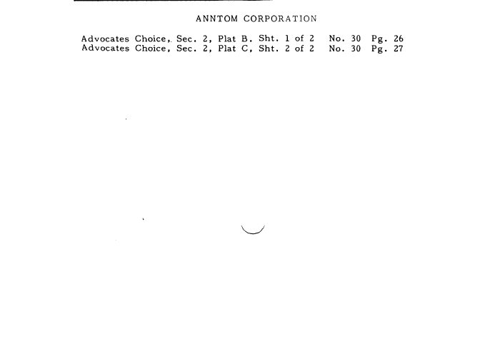 | ANNTOM CORPORATION Advocates Choice,. Sec. 2, Plat B. Sht. 1 of 2 No. 30 Pg. 26 Advocates Choice, Sec. 2, Plat C, Sht. 2 of 2 No. 30 Pg. 27 |