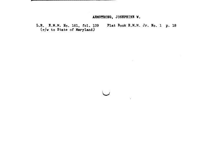 | AHMSTEONO, JOSEPHINE W. L.R. E.M.M. No. 161, fol. 139 Plat Book B.M.M. Jr. No. 1 p. 18 (r/w to State of Maryland) |