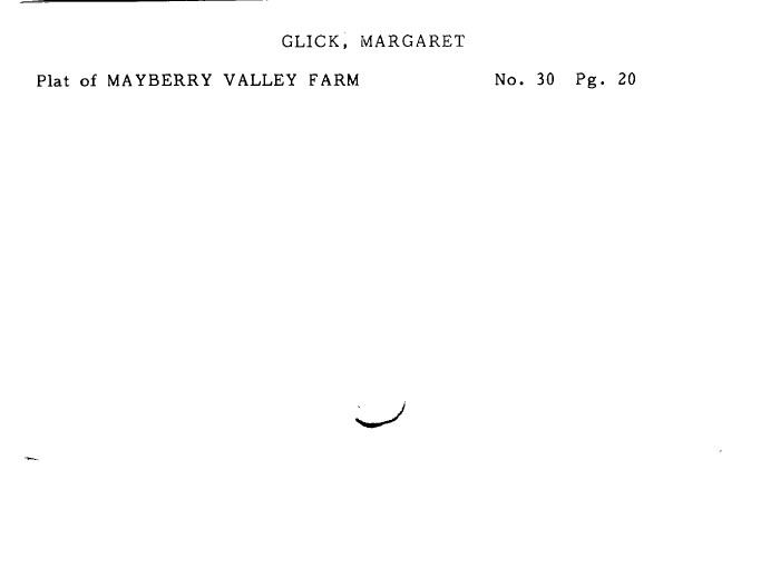 | CLICK, MARGARET Plat of MAYBERRY VALLEY FARM No. 30 Pg. 20 |
