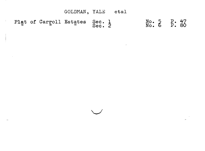 | GOLDMAN, YALE etal Plat of Carroll Estates Sec. 1 No. 5 P. 4-7 " " " Sec. 2 No. 6 P. 80 |