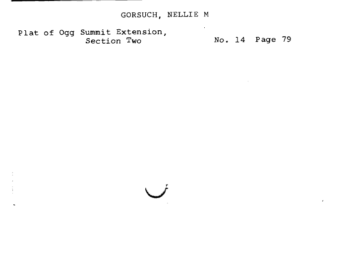 | GORSUCH, NELLIE M Plat of Ogg Summit Extension, Section Two No. 14 Page 79 |