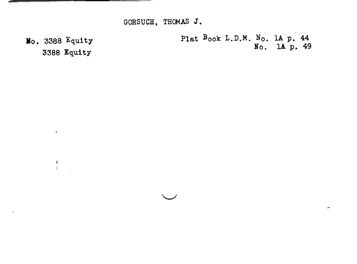 | GORSUCH, THOMAS J. Ho. 3388 Equity Plat Book L.D.M. No. 1A p. 44 Ho. 1A p. 49 3388 Equity |