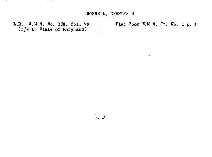 | OOSJTELL, CHARLES S. L.B. E.M.M, So. 158, fol. 79 Plat look E.M.M. Jr. No. 1 p. < (r/w to State of Maryland) |