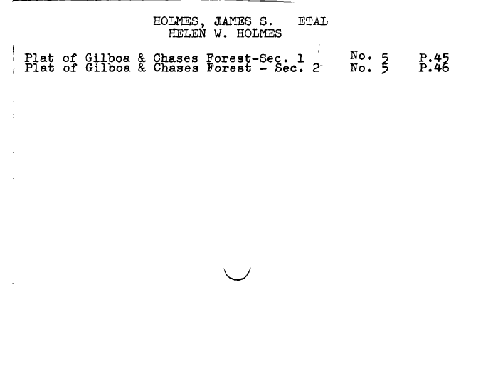 | HOLMES, JAMES S. ETAL HELEN W. HOLMES Plat of Gilboa & Chases Forest-Sec. 1 ^ No. 5 p.4.' Plat of Gilboa & Chases Forest - Sec. 2~ No. 5 P.4? |