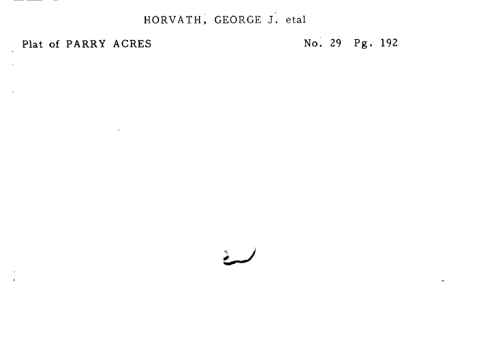 | HORVATH, GEORGE j". etal Plat of PARRY ACRES No. 29 Pg. 192 |