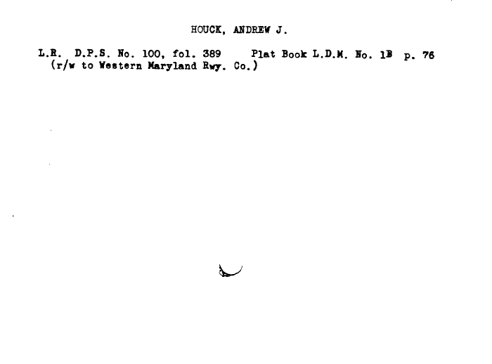 | HOUCK, ANDREW J. L.E. D.P.S. No. 100, fol. 389 Plat Book L.D.M. No. IB p. 76 (r/w to Western Maryland fiwy. Co.) |
