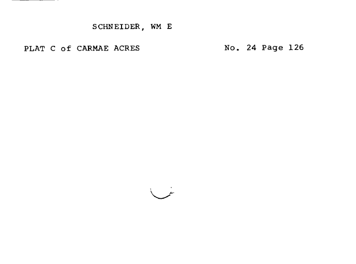 | SCHNEIDER, WM E PLAT C of CARMAE ACRES No. 24 Page 126 |