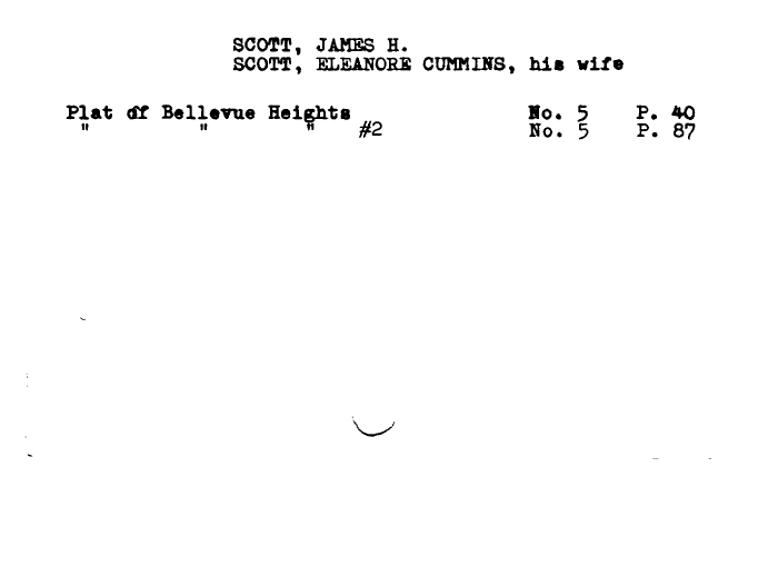 | SCOTT, JAMES H. SCOTT, ELEANORS CUMMINS, his wife Plat tff Bell«vue Heights Ho. 5 P. 40 ^ #2 No. 5 P. 8? |