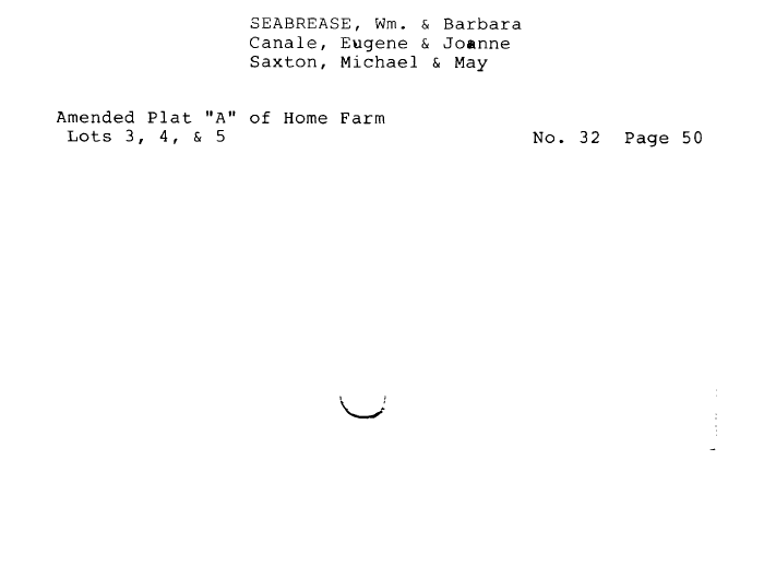 | 3EABREASE, Wm. & Barbara Canale, Eugene & Joanne Saxton, Michael & May Amended Plat "A" of Home Farm Lots 3, 4, & 5 No. 32 Page 50 |