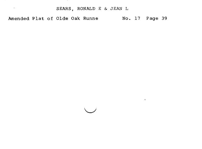 | SEARS, RONALD E & JEAN L Amended Plat of Olde Oak Runne No. 17 Page 39 |
