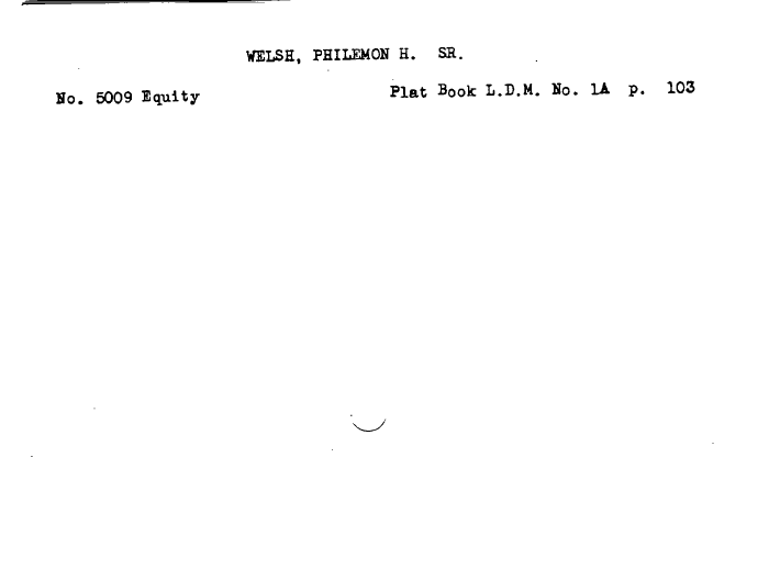 | WELSH, PHILEMON H. SB. No. 5009 Equity Plat Book L.D.M. No. 1A p. 103 |