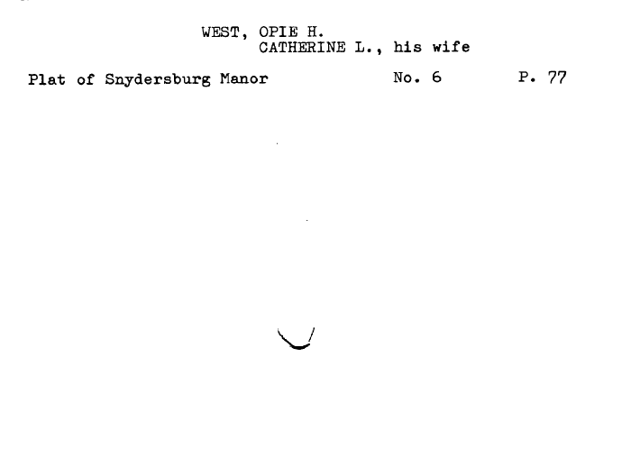 | WEST, OPIE H. CATHERINE L., his wife Plat of Snydersburg Manor No. 6 P. 77 |