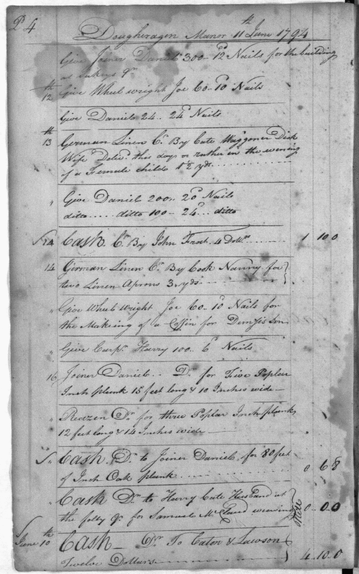 Carroll family account books for Doughoregan Manor, 1794-1803 HCHS RA 27&28/MSA SC 5465 ra27-0007 Enlarge and print image (906K) << PREVIOUS NEXT >> |