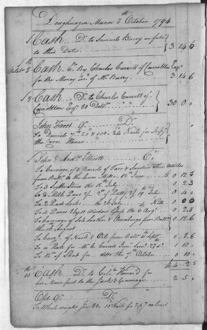 Carroll family account books for Doughoregan Manor, 1794-1803 HCHS RA 27&28/MSA SC 5465 ra27-0027 Enlarge and print image (898K) << PREVIOUS NEXT >> |