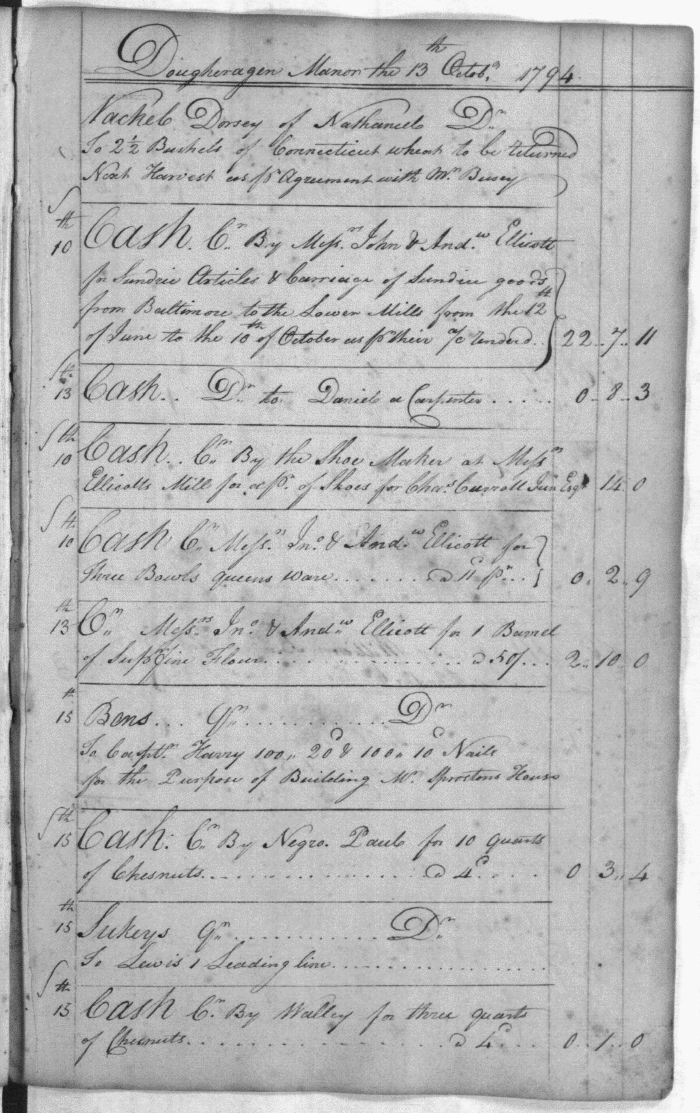 Carroll family account books for Doughoregan Manor, 1794-1803 HCHS RA 27&28/MSA SC 5465 ra27-0028 Enlarge and print image (910K) << PREVIOUS NEXT >> |