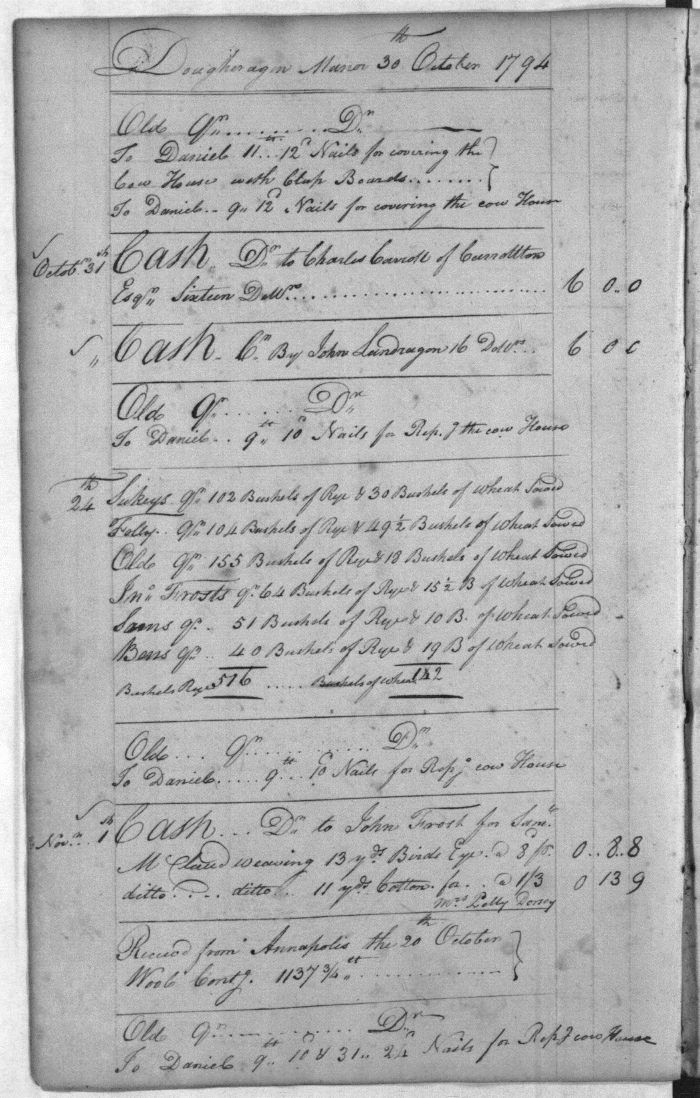 Carroll family account books for Doughoregan Manor, 1794-1803 HCHS RA 27&28/MSA SC 5465 ra27-0031 Enlarge and print image (902K) << PREVIOUS NEXT >> |