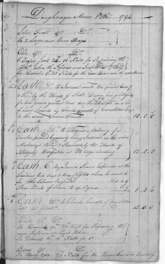 Carroll family account books for Doughoregan Manor, 1794-1803 HCHS RA 27&28/MSA SC 5465 ra27-0032 Enlarge and print image (882K) << PREVIOUS NEXT >> |