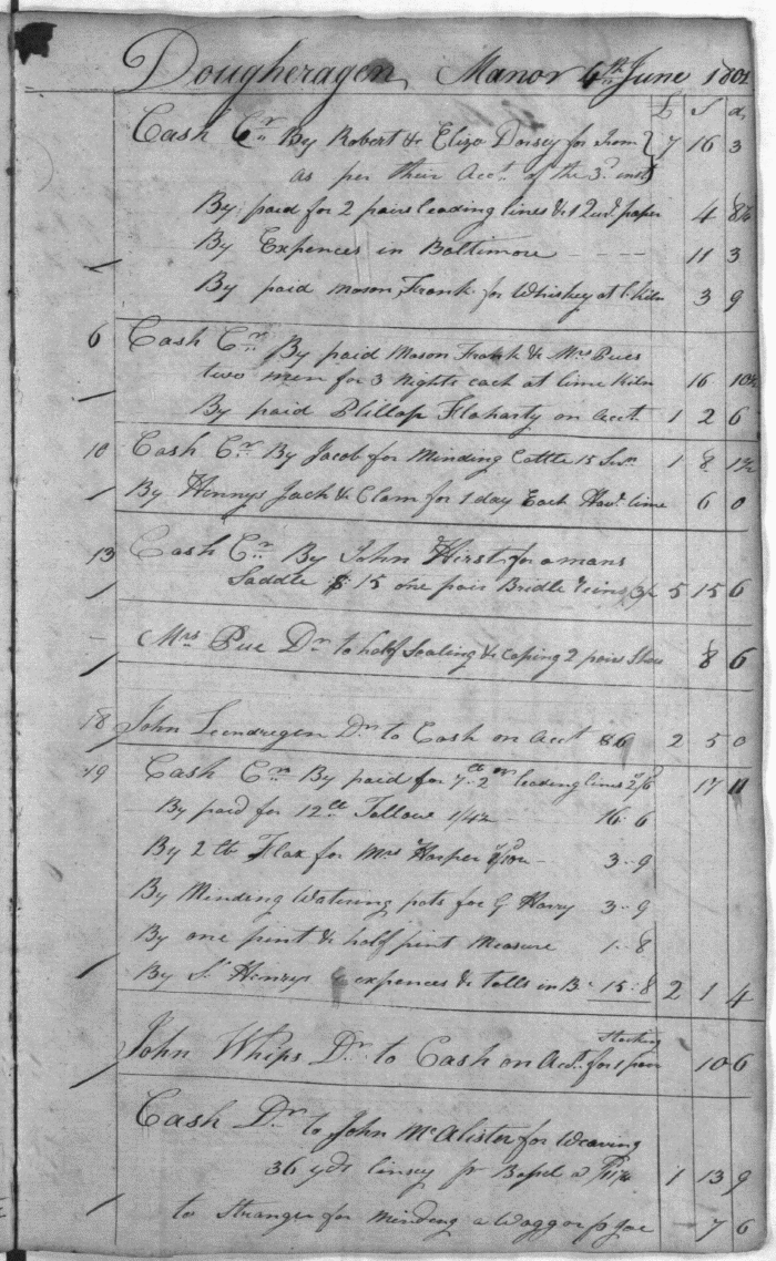 Carroll family account books for Doughoregan Manor, 1794-1803 HCHS RA 27&28/MSA SC 5465 ra27-0232 Enlarge and print image (924K) << PREVIOUS NEXT >> |
