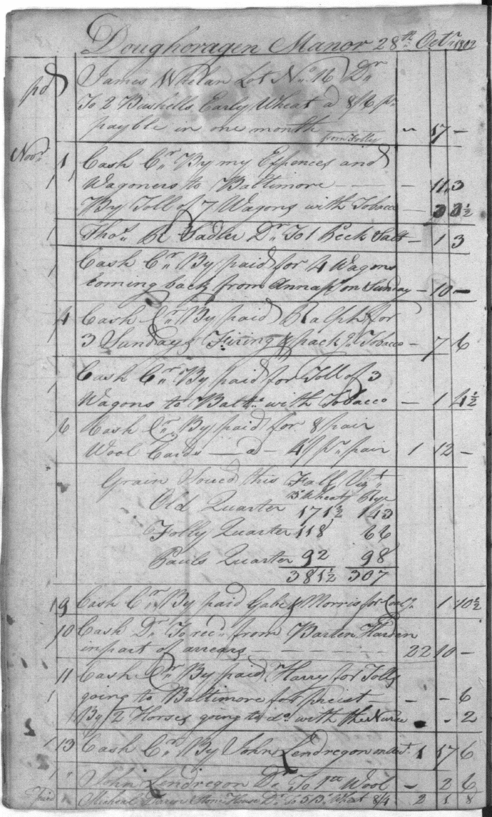 Carroll family account books for Doughoregan Manor, 1794-1803 HCHS RA 27&28/MSA SC 5465 ra27-0260 Enlarge and print image (912K) << PREVIOUS NEXT >> |