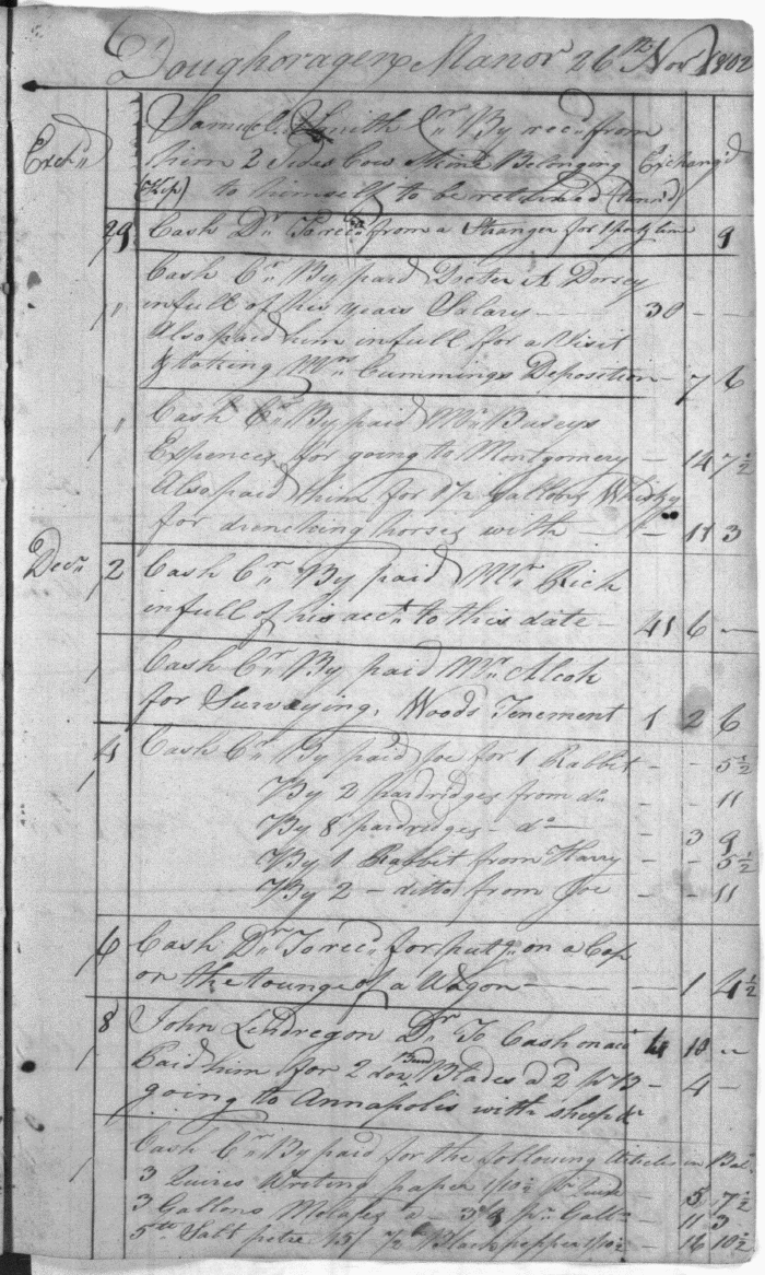 Carroll family account books for Doughoregan Manor, 1794-1803 HCHS RA 27&28/MSA SC 5465 ra27-0263 Enlarge and print image (927K) << PREVIOUS NEXT >> |