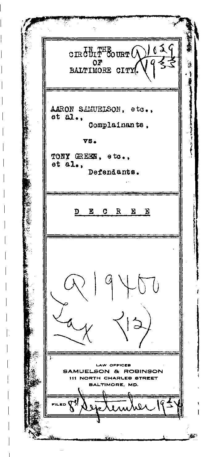 Tony Green, et al. vs. Aaron Samuelson, et al., 168 Md. 421 (1935) Image No: 271 Enlarge and print image (37K) |