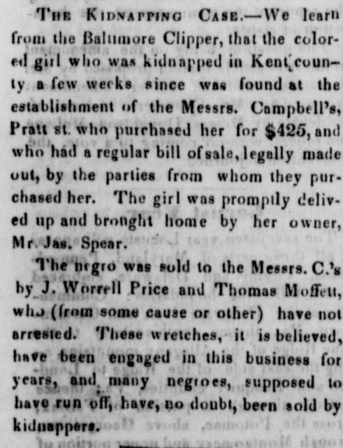 "The Centreville Kidnapping Case." Baltimore Sun, 27 December 1850, p. 2.