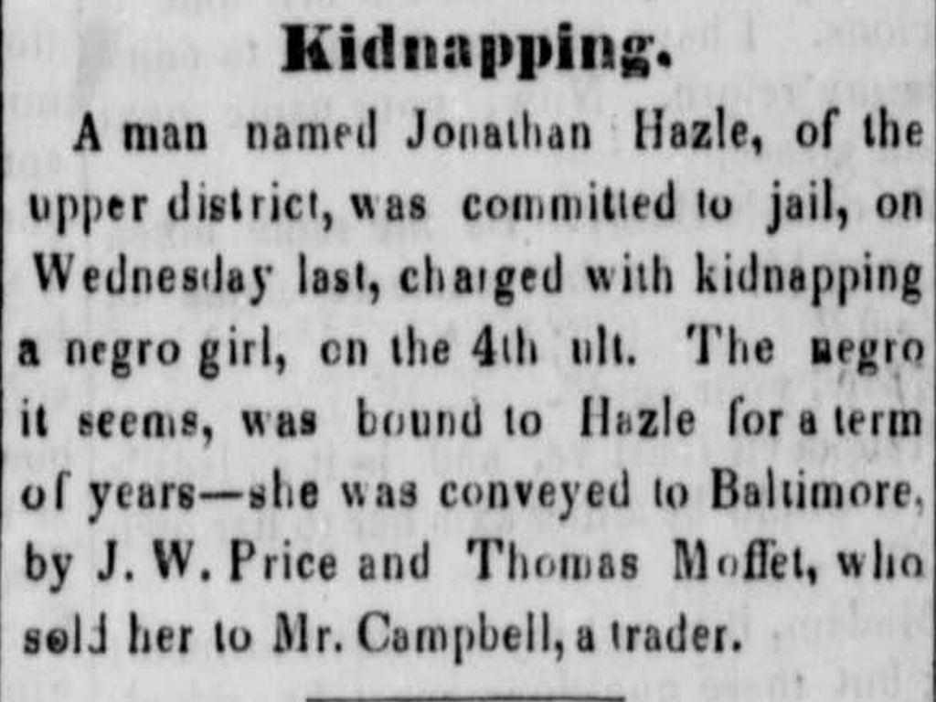 "Kidnapping." Kent News, 1 February 1851, p.2. [MSA SC 2901, M 2352-01].