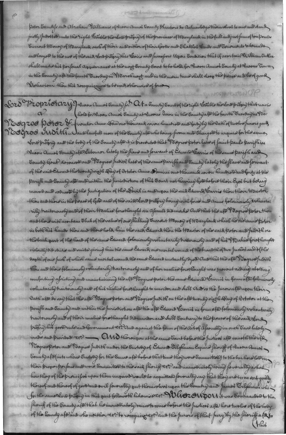 Judith. 1 Harris was murdered on October 26, 1740 and she was the main suspect, along with Negro Peter. 2