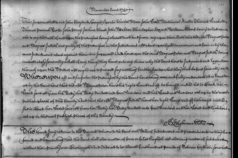 Both, Negro Judith and Negro Peter proclaimed their innocence, but the court ruled otherwise. 8
