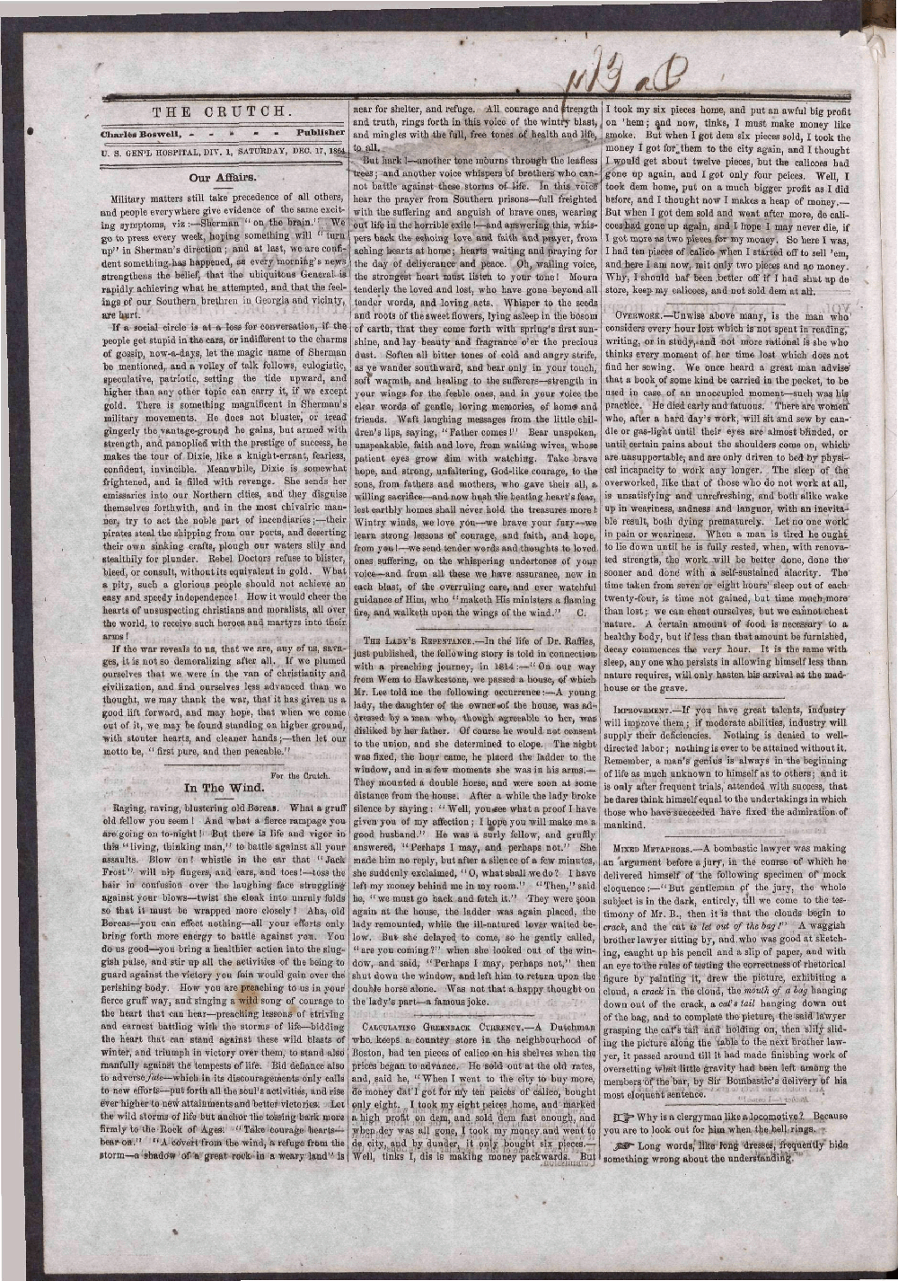 The Crutch January 9, 1864 - May 13, 1865 A Publication of the Archives of Maryland Online Image No: 206 Enlarge and print image (1M) |