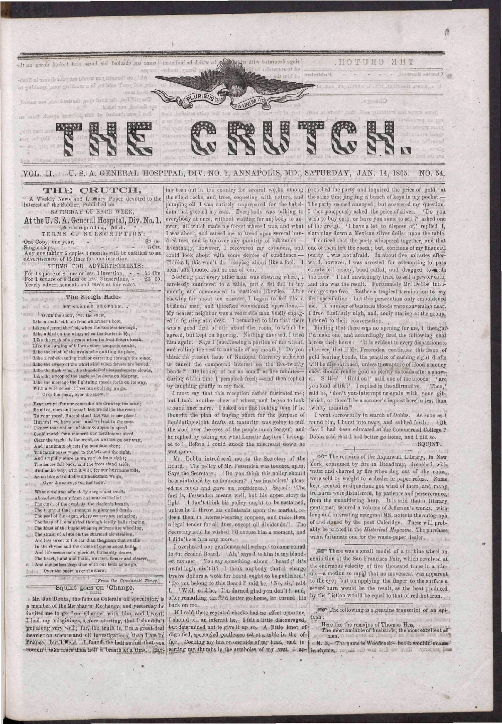 The Crutch January 9, 1864 - May 13, 1865 A Publication of the Archives of Maryland Online Image No: 223 Enlarge and print image (914K) |