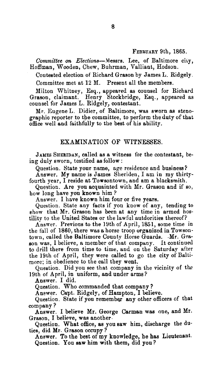 GENERAL ASSEMBLY, HOUSE OF DELEGATES (House Journal and Documents) Evidence of the Contested Election in the Case of Ridgely vs. Grason to the General Assembly 1865, Document V MdHR 812443, 2/1/7/30 Image No: 7
