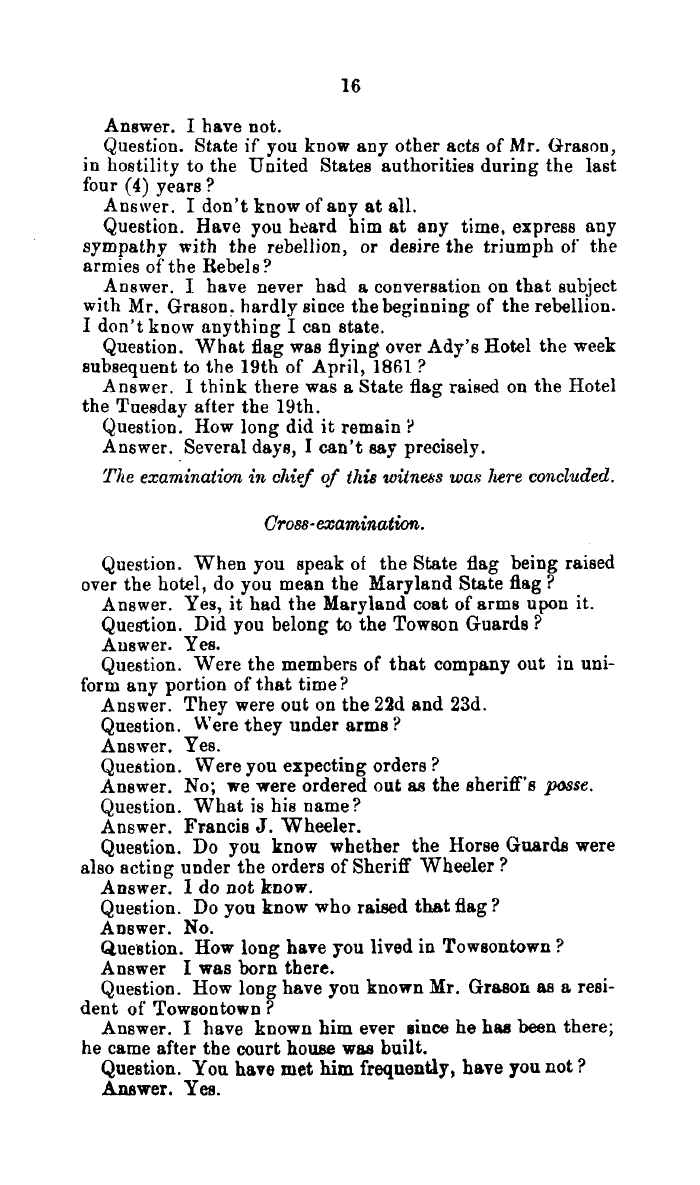 GENERAL ASSEMBLY, HOUSE OF DELEGATES (House Journal and Documents) Evidence of the Contested Election in the Case of Ridgely vs. Grason to the General Assembly 1865, Document V MdHR 812443, 2/1/7/30 Image No: 15
