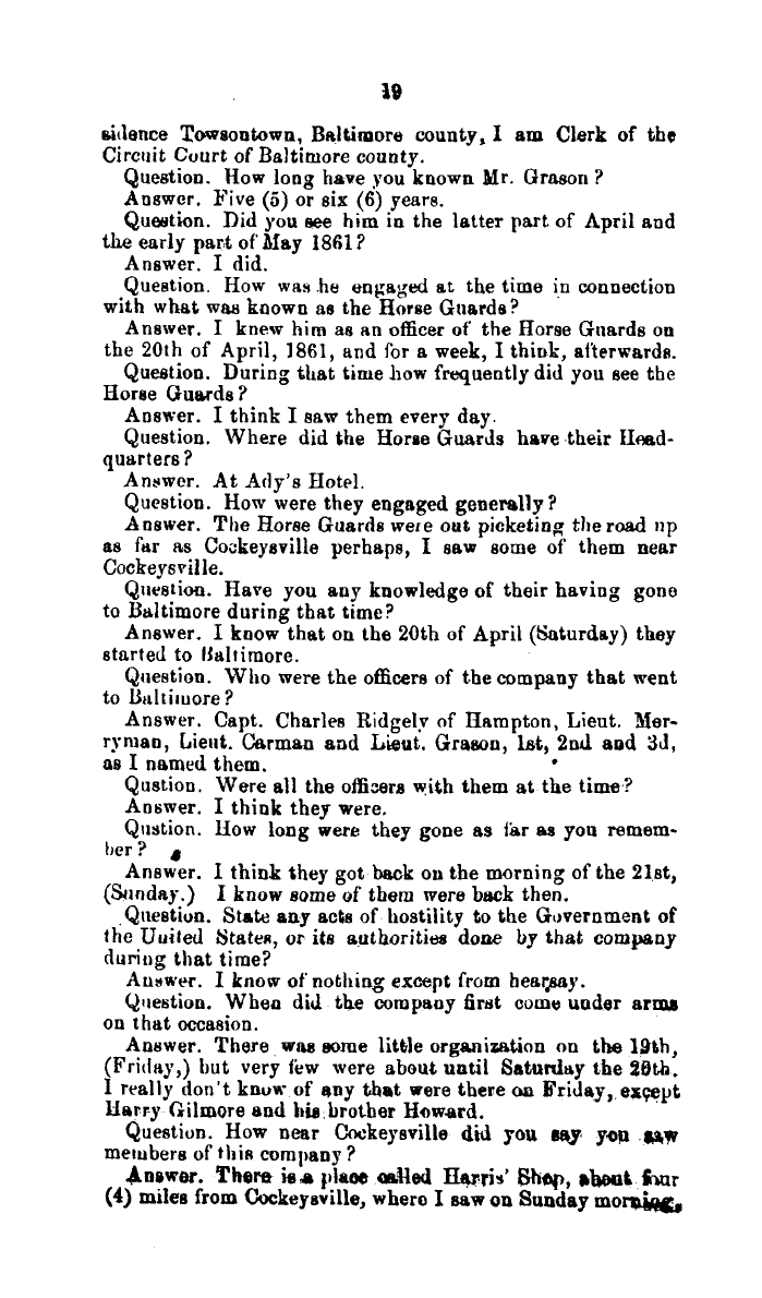 GENERAL ASSEMBLY, HOUSE OF DELEGATES (House Journal and Documents) Evidence of the Contested Election in the Case of Ridgely vs. Grason to the General Assembly 1865, Document V MdHR 812443, 2/1/7/30 Image No: 18