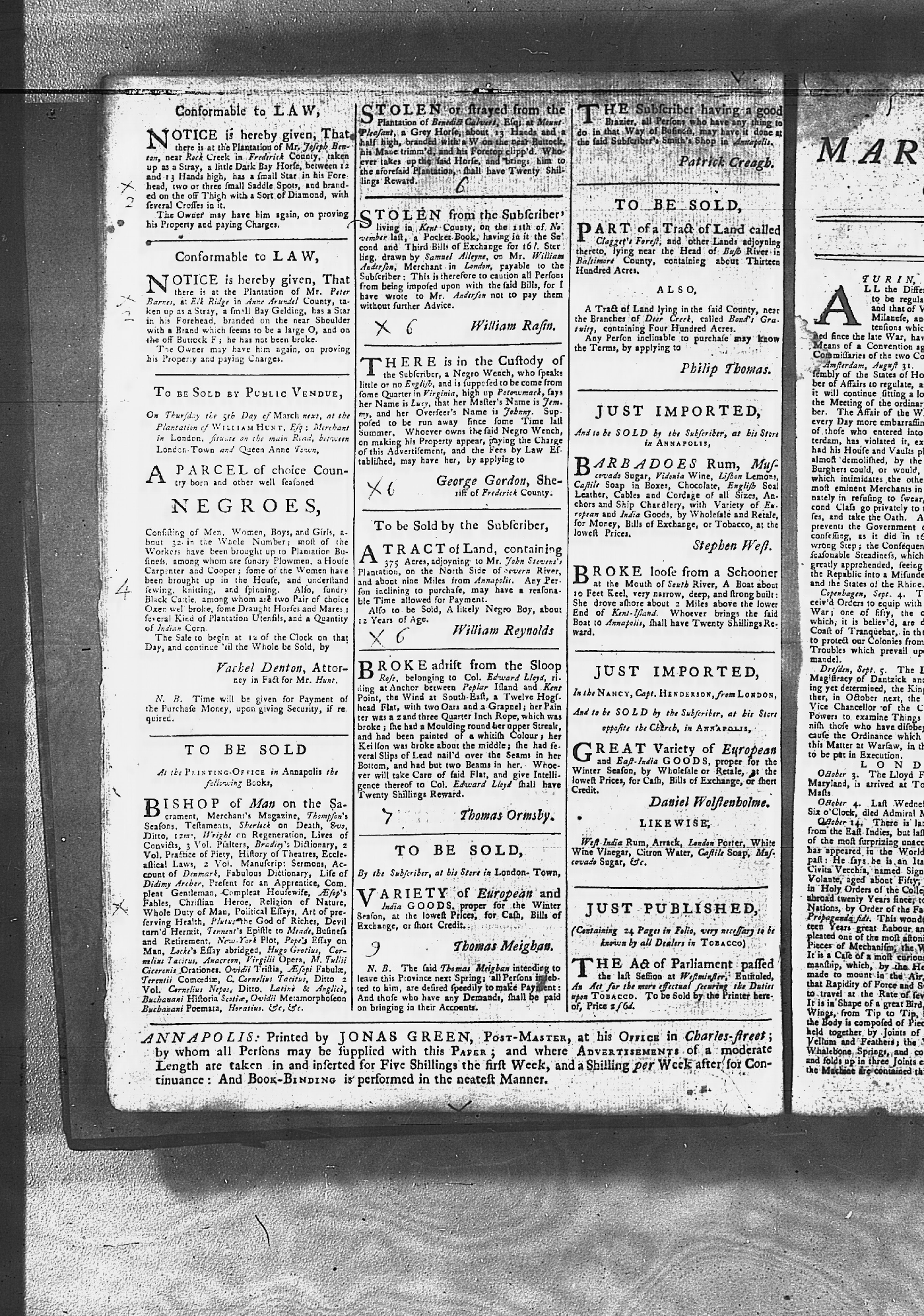 Maryland Gazette Collection MSA SC 2731 January 2, 1752 - October 19, 1758 M 1279 A Publication of the Archives of Maryland Online Image No: 15 Enlarge and print image (3M) |