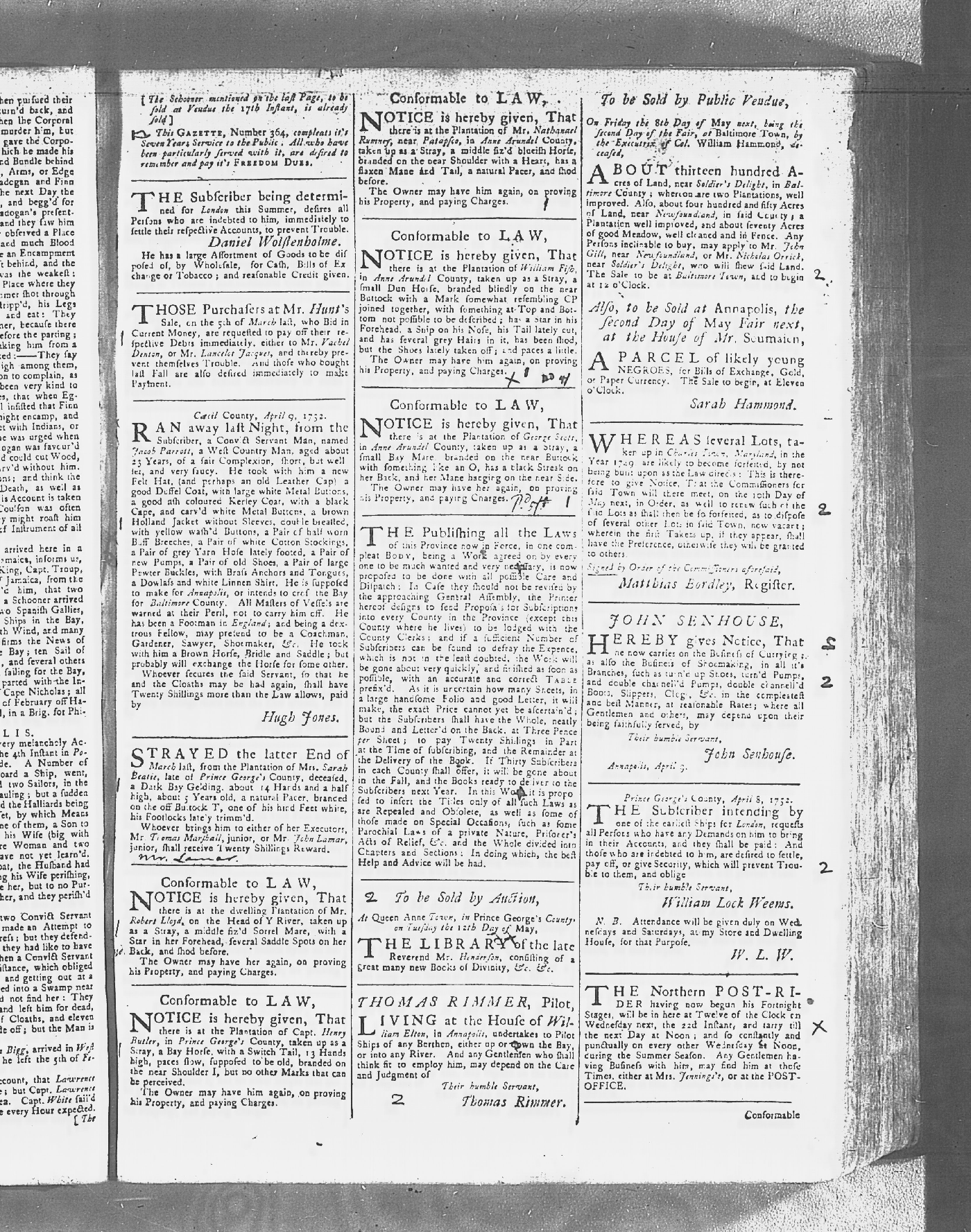 Maryland Gazette Collection MSA SC 2731 January 2, 1752 - October 19, 1758 M 1279 A Publication of the Archives of Maryland Online Image No: 70 Enlarge and print image (2M) |