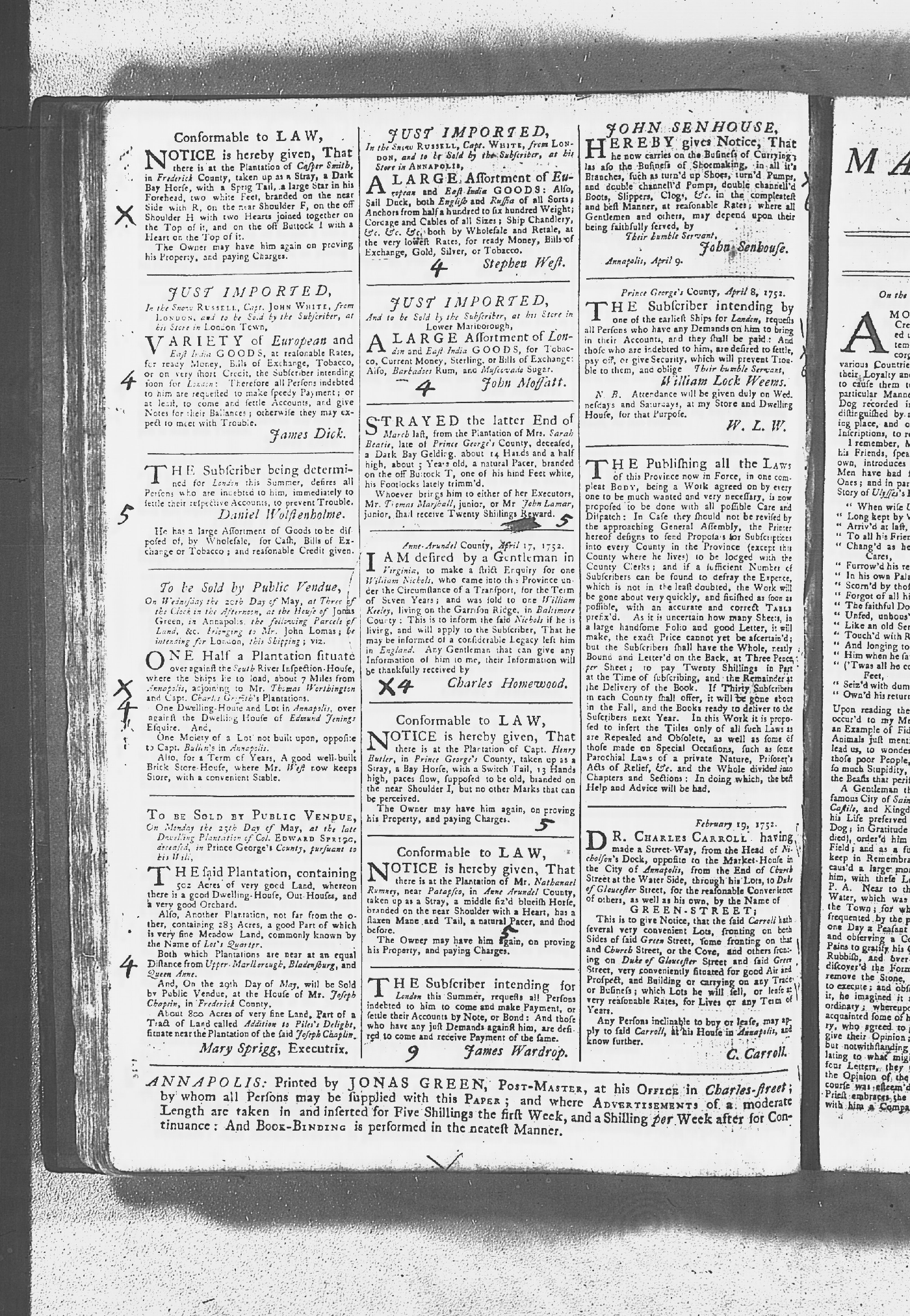 Maryland Gazette Collection MSA SC 2731 January 2, 1752 - October 19, 1758 M 1279 A Publication of the Archives of Maryland Online Image No: 86 Enlarge and print image (3M) |
