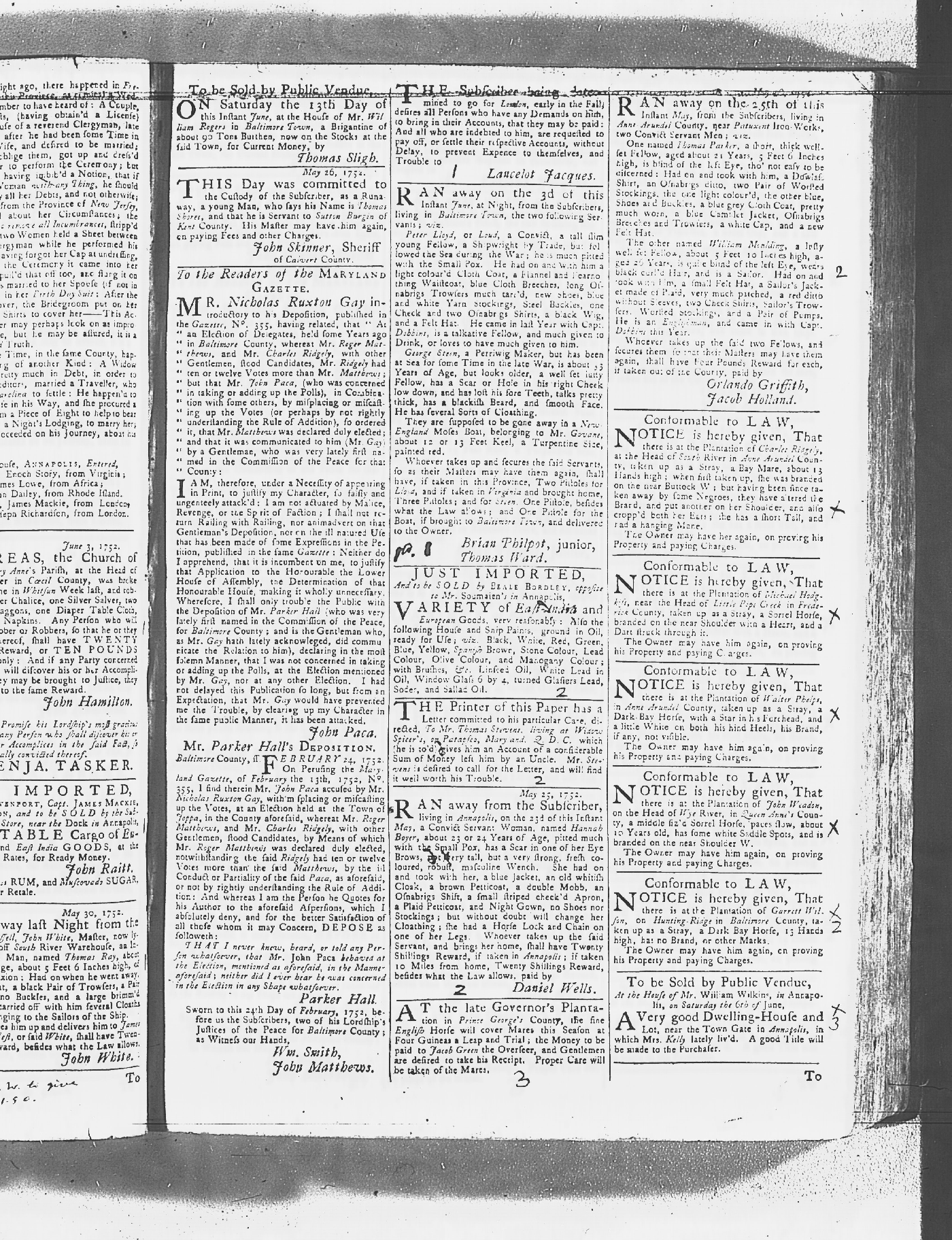 Maryland Gazette Collection MSA SC 2731 January 2, 1752 - October 19, 1758 M 1279 A Publication of the Archives of Maryland Online Image No: 99 Enlarge and print image (3M) |