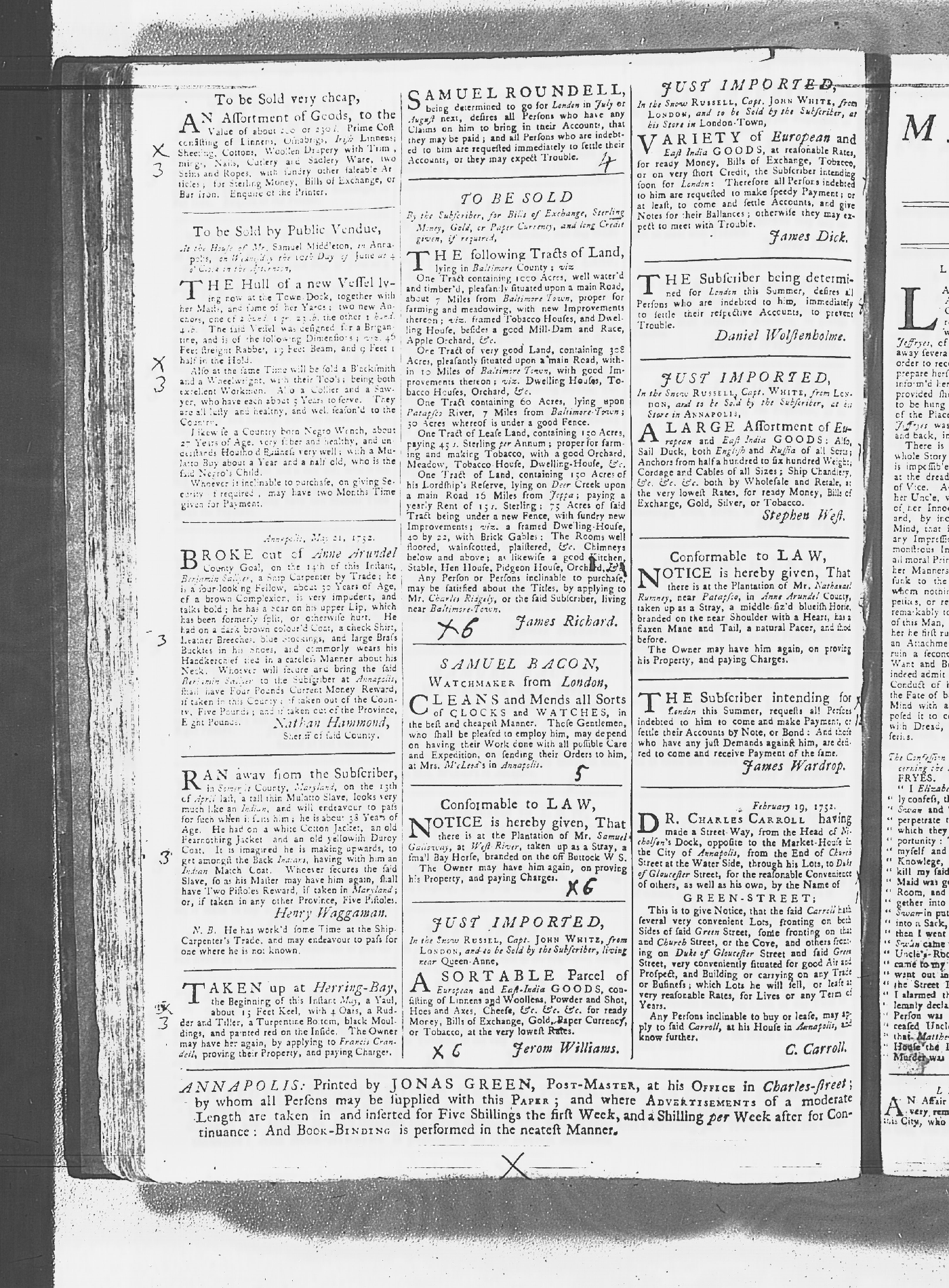 Maryland Gazette Collection MSA SC 2731 January 2, 1752 - October 19, 1758 M 1279 A Publication of the Archives of Maryland Online Image No: 100 Enlarge and print image (2M) |