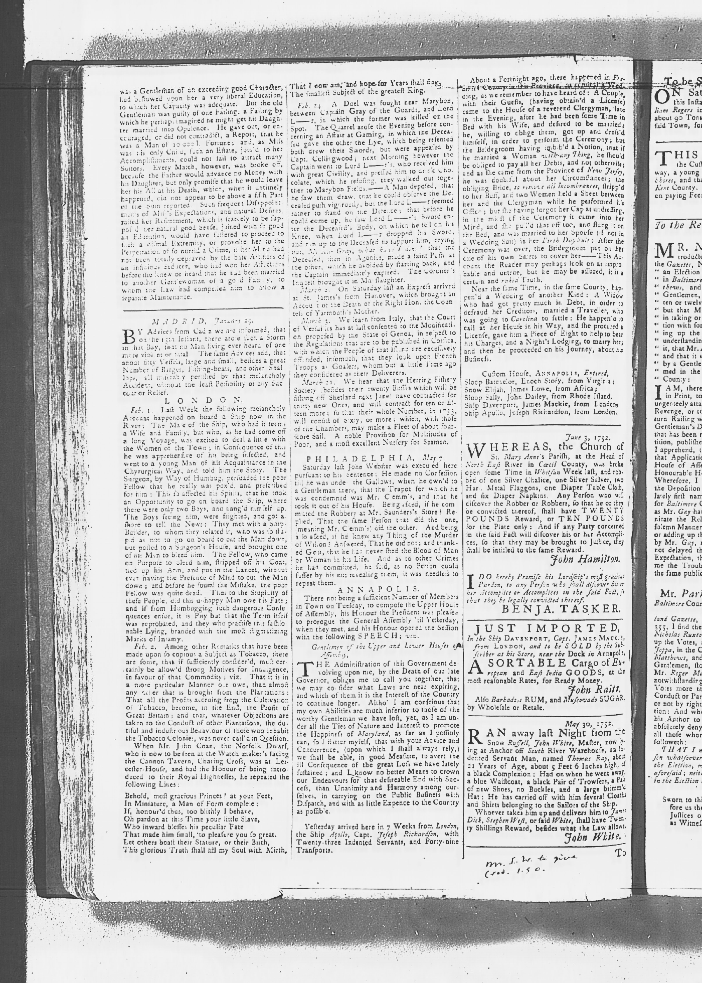 Maryland Gazette Collection MSA SC 2731 January 2, 1752 - October 19, 1758 M 1279 A Publication of the Archives of Maryland Online Image No: 110 Enlarge and print image (3M) |