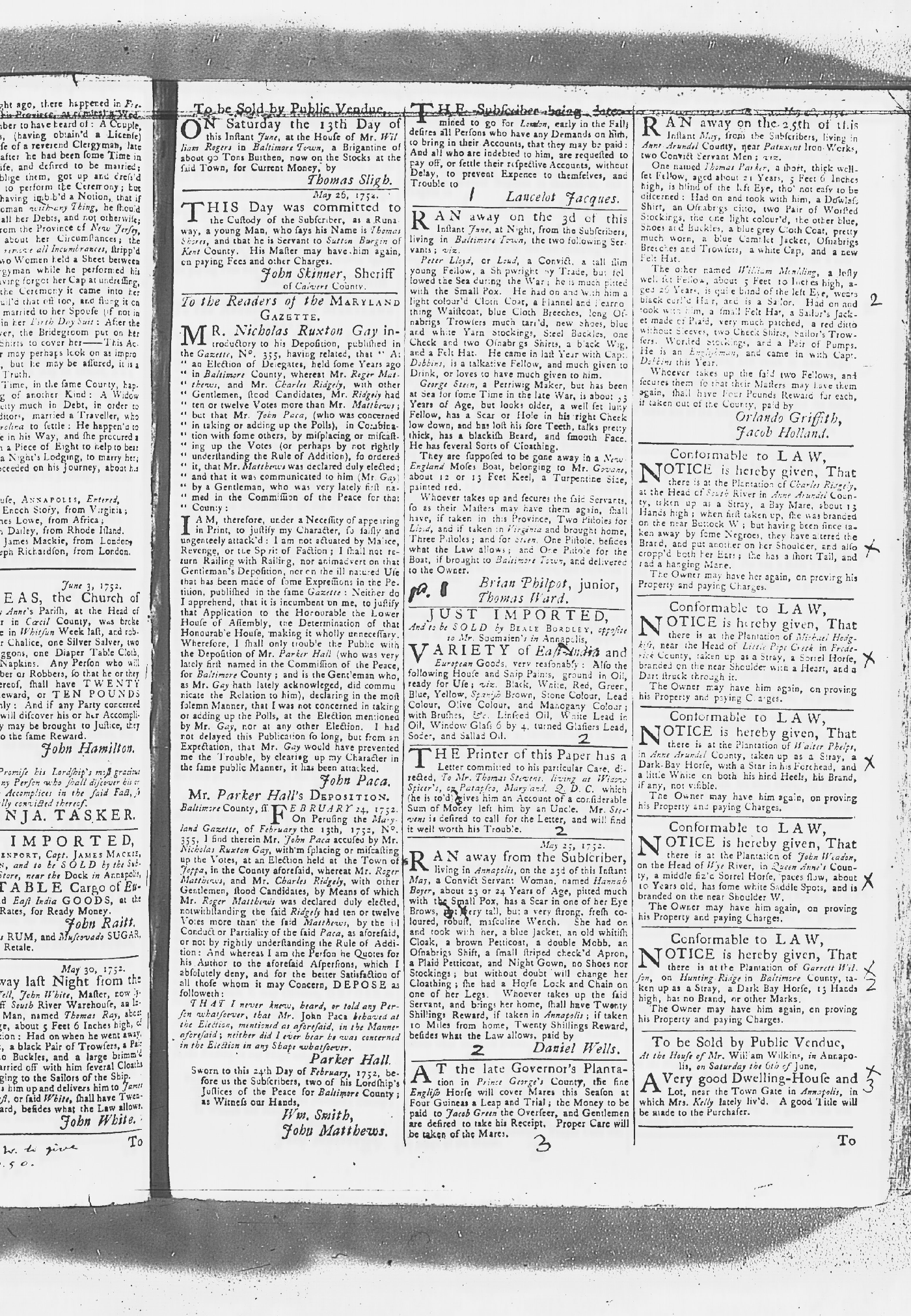 Maryland Gazette Collection MSA SC 2731 January 2, 1752 - October 19, 1758 M 1279 A Publication of the Archives of Maryland Online Image No: 111 Enlarge and print image (2M) |