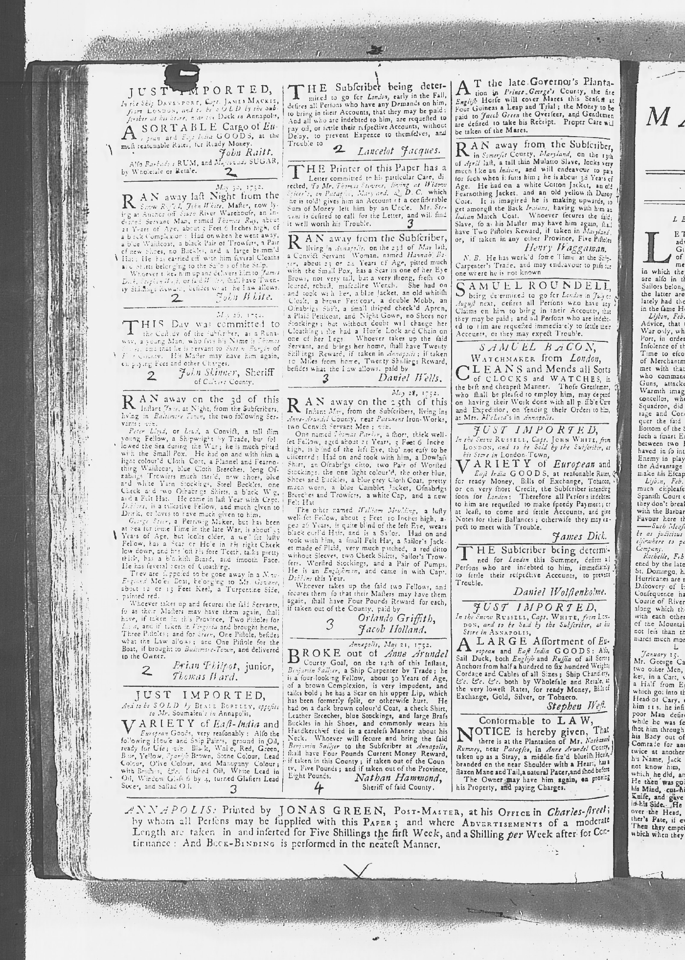 Maryland Gazette Collection MSA SC 2731 January 2, 1752 - October 19, 1758 M 1279 A Publication of the Archives of Maryland Online Image No: 116 Enlarge and print image (2M) |