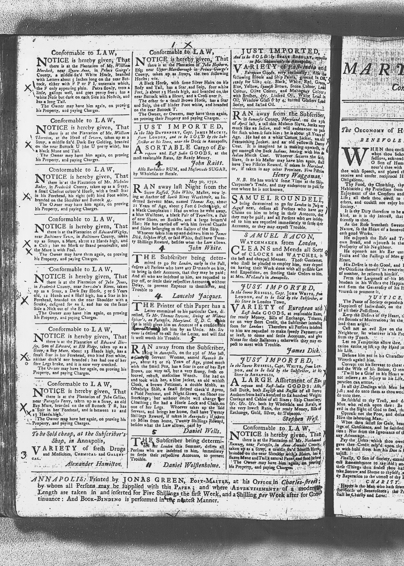 Maryland Gazette Collection MSA SC 2731 January 2, 1752 - October 19, 1758 M 1279 A Publication of the Archives of Maryland Online Image No: 124 Enlarge and print image (3M) |
