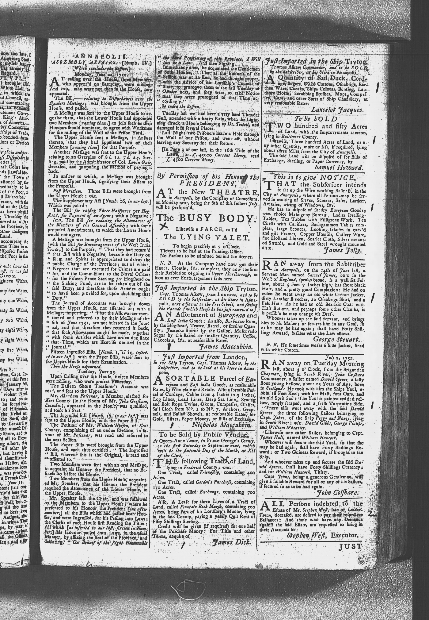 Maryland Gazette Collection MSA SC 2731 January 2, 1752 - October 19, 1758 M 1279 A Publication of the Archives of Maryland Online Image No: 127 Enlarge and print image (3M) |