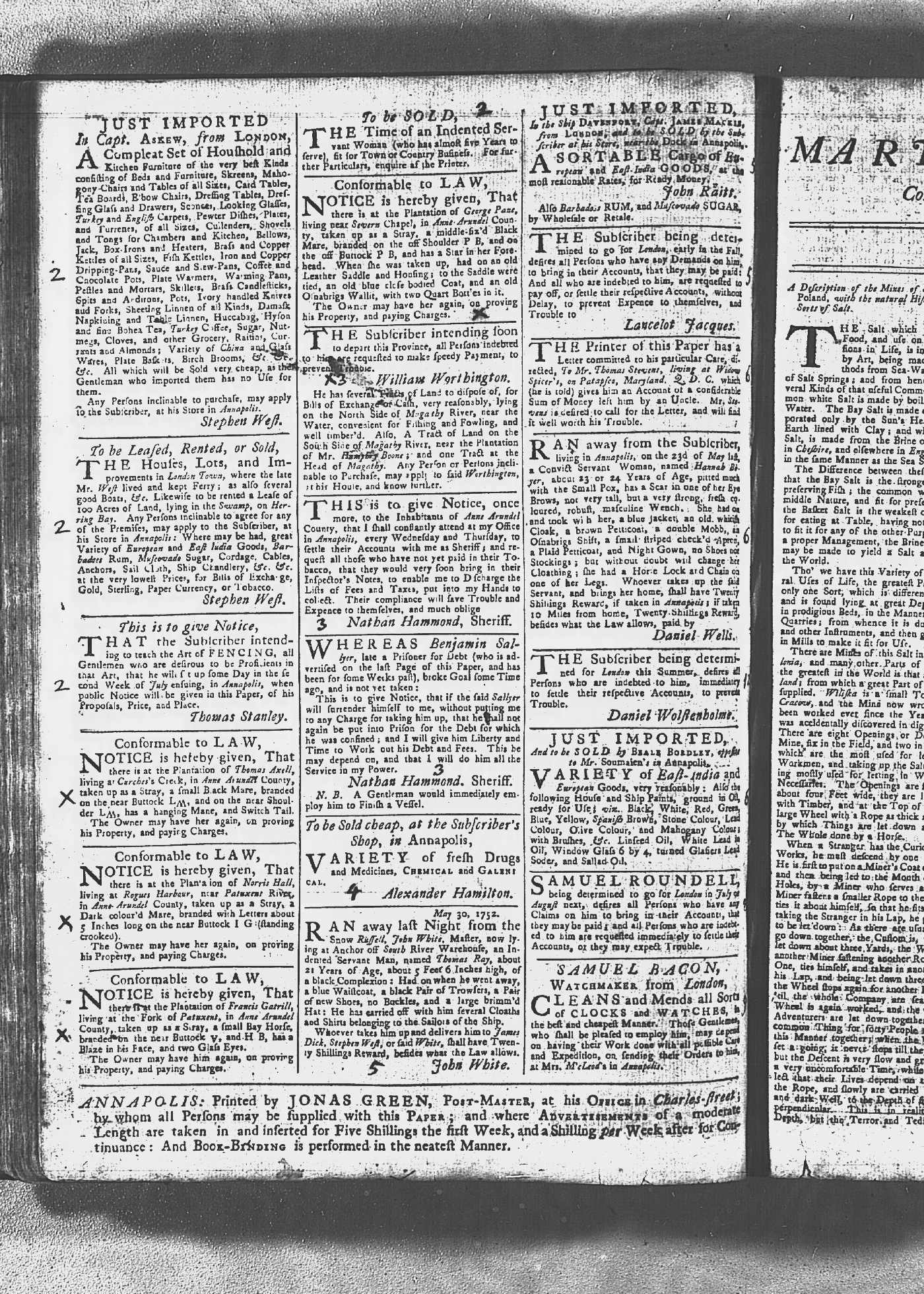 Maryland Gazette Collection MSA SC 2731 January 2, 1752 - October 19, 1758 M 1279 A Publication of the Archives of Maryland Online Image No: 128 Enlarge and print image (3M) |